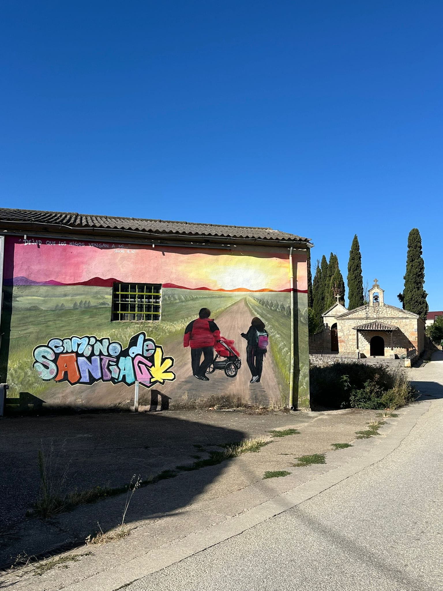 For the first 5 or so miles, I was keeping up a really good pace, about an 18 minute or less mile. I met someone from Madrid who I just called “Madrid” and he called me “Chicago” every time we passed each other. I also met a man from Houston who I walked with for a little bit. At around the 7 mile mark, I came up on the first town of the day where I stopped and used the bathroom. I also stopped at the church in town and got a stamp for my pilgrim passport.