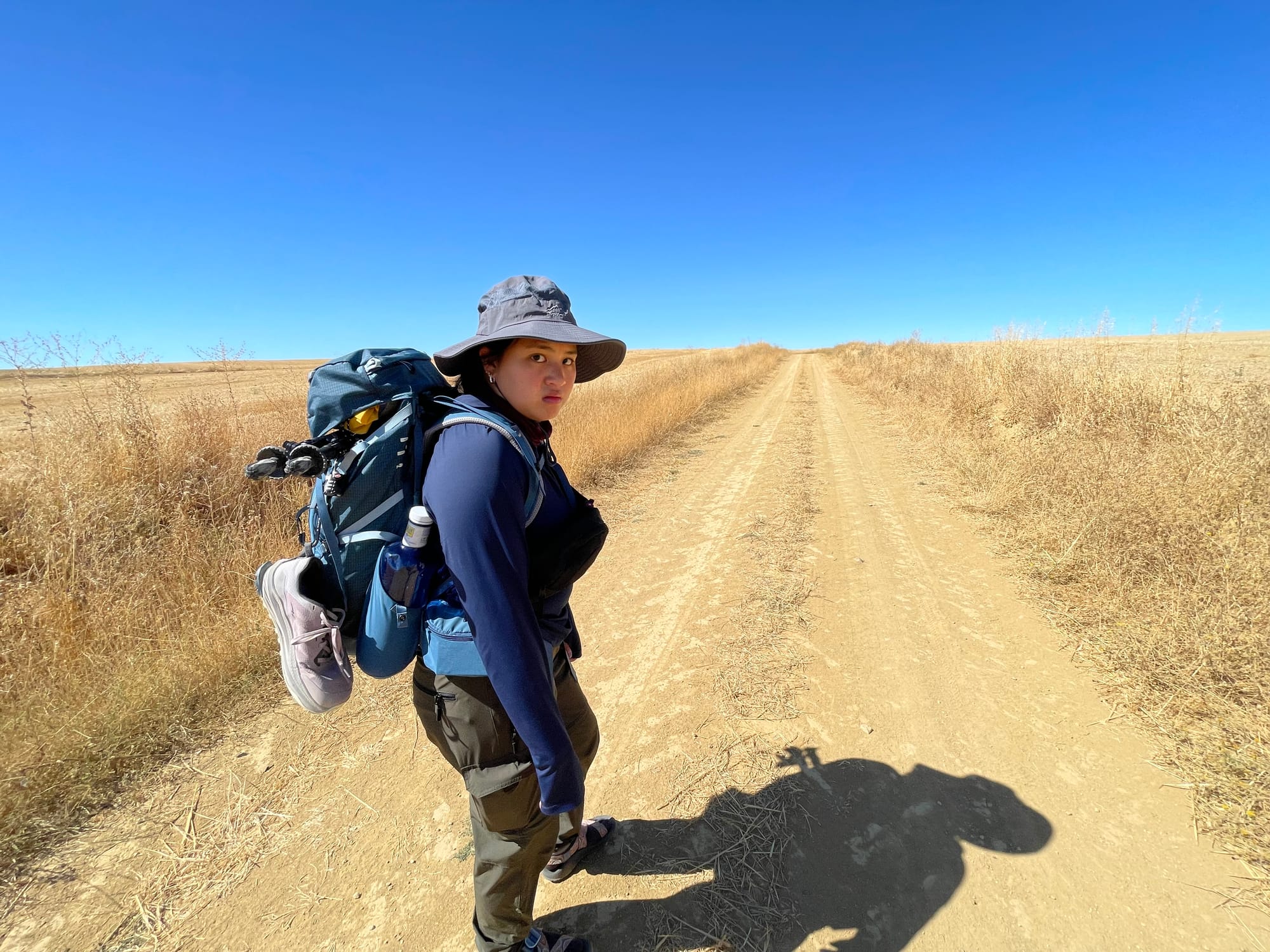 We had about four miles left and it was around 12:30pm. It had gotten significantly hotter, the sun got a lot stronger, and it was a tough last push. We probably shouldn’t have taken so long of a break but it was worth it. The last four miles was along country paths next to a farm, and also along the main road. It was so flat, so hot, so boring, and there was a bit of a hill. It wasn’t very fun but being able to do it with Tovin made it a lot better. I’m very glad he’s here, and it makes me happy that we can do not very fun things together and make it enjoyable.