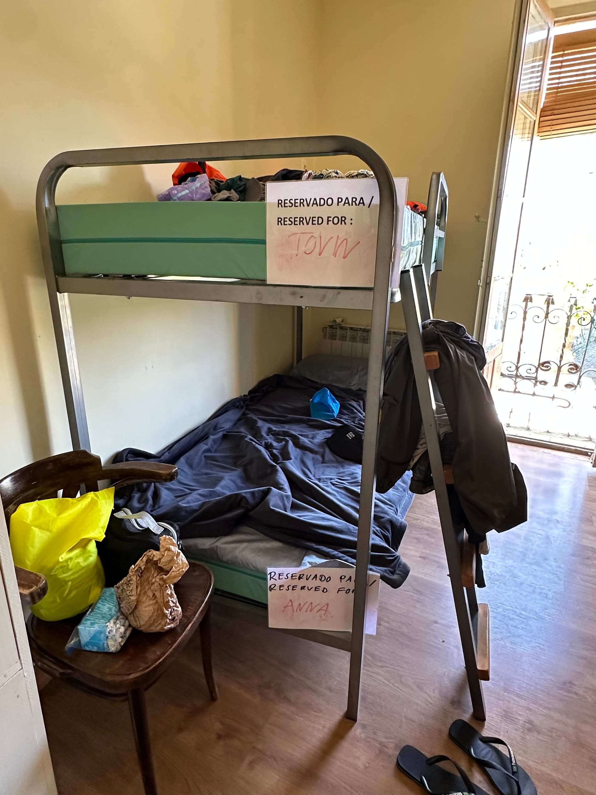 We got settled into our room, turned on the air conditioning, and I got into the shower. It felt so nice to get clean and wash off the day, especially the last few miles. After I finished showering, Tovin showered and then also did all of our laundry in the shower with just the hostel soap and water. I am glad he is here for many reasons, but I will especially miss him doing my laundry for me. Tovin went outside to hang up our laundry up to dry, and then texted me to join him so I did.