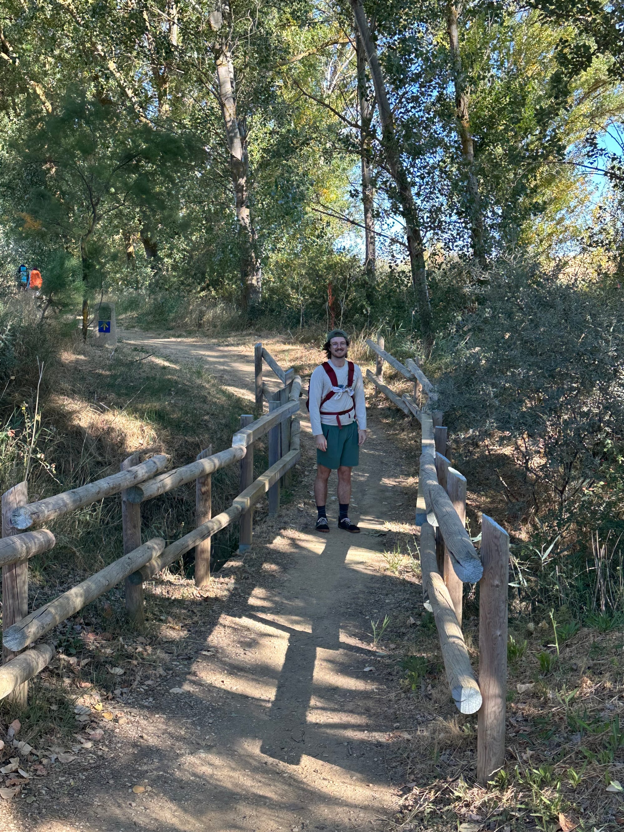 Before leaving town, we realized there is an alternate route for today that we decided to take. The main route is along a road the entire way, and the alternate route would go through some woods, a river, have some shade, and was overall a nicer path to walk. We walked along the alternate route for most of the day and took a few rests along benches and any place we could find to sit in the shade.