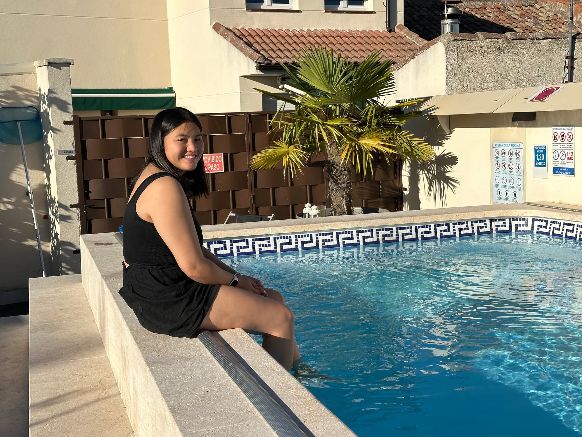 We ended up just going to the hostel to check in. It didn’t have a receptionist but rather had a self check in kiosk in the vestibule, where you enter the booking number, scan your passport, enter your information, pay, and then it spits out your room number and key and you can get into the building. It was a really nice room with a nice shower, a big bed, and a pool! I think the real cherry on top is that the place has air conditioning.