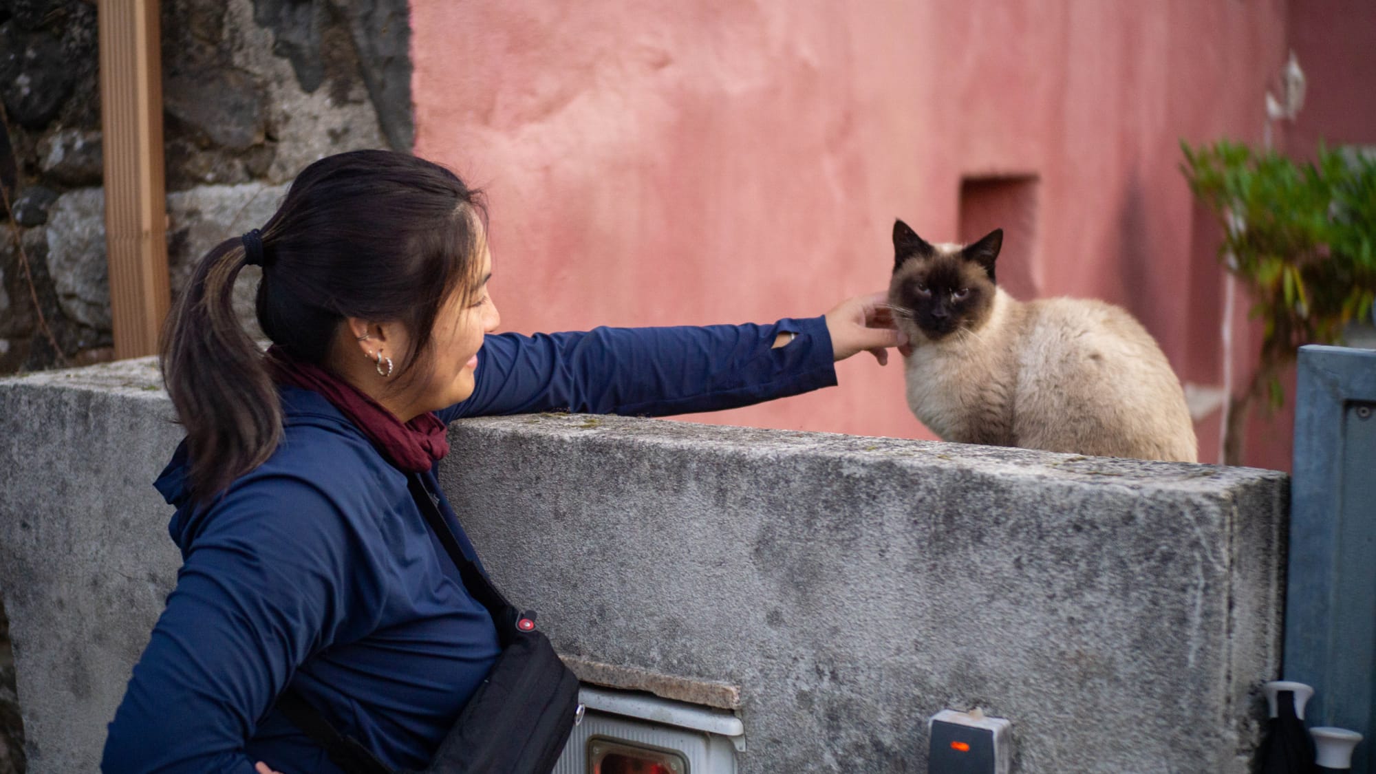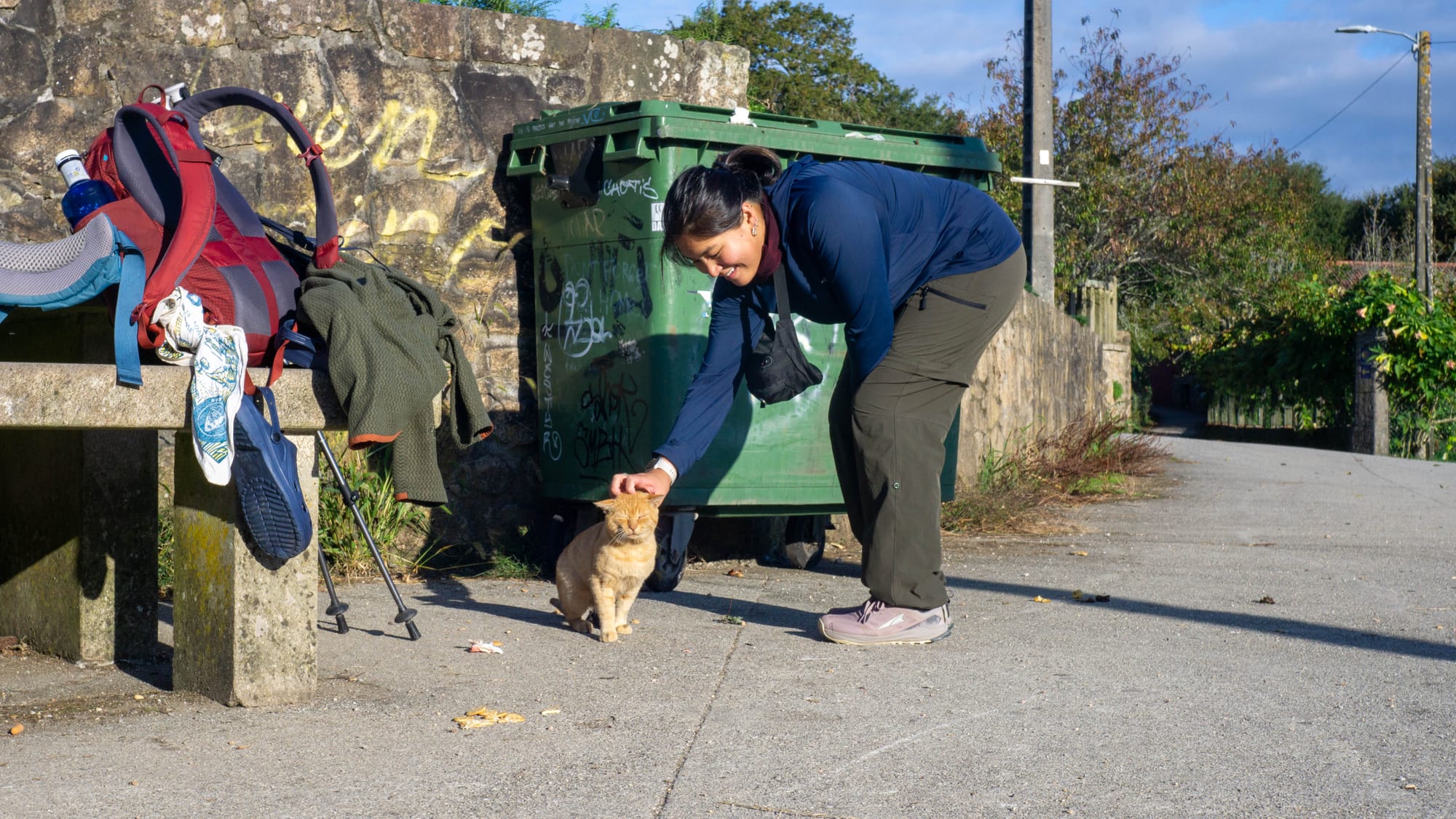 Even if we were unhappy about the elevation, there were some beautiful spots along the way, including a field that looked like it was straight out of "The Sound of Music" and also a little wayside rest with a super friendly orange cat who loved being pet so much! He was a little dirty because he had accidentally stepped in some mud, but was so friendly and we stayed with him for a long time.